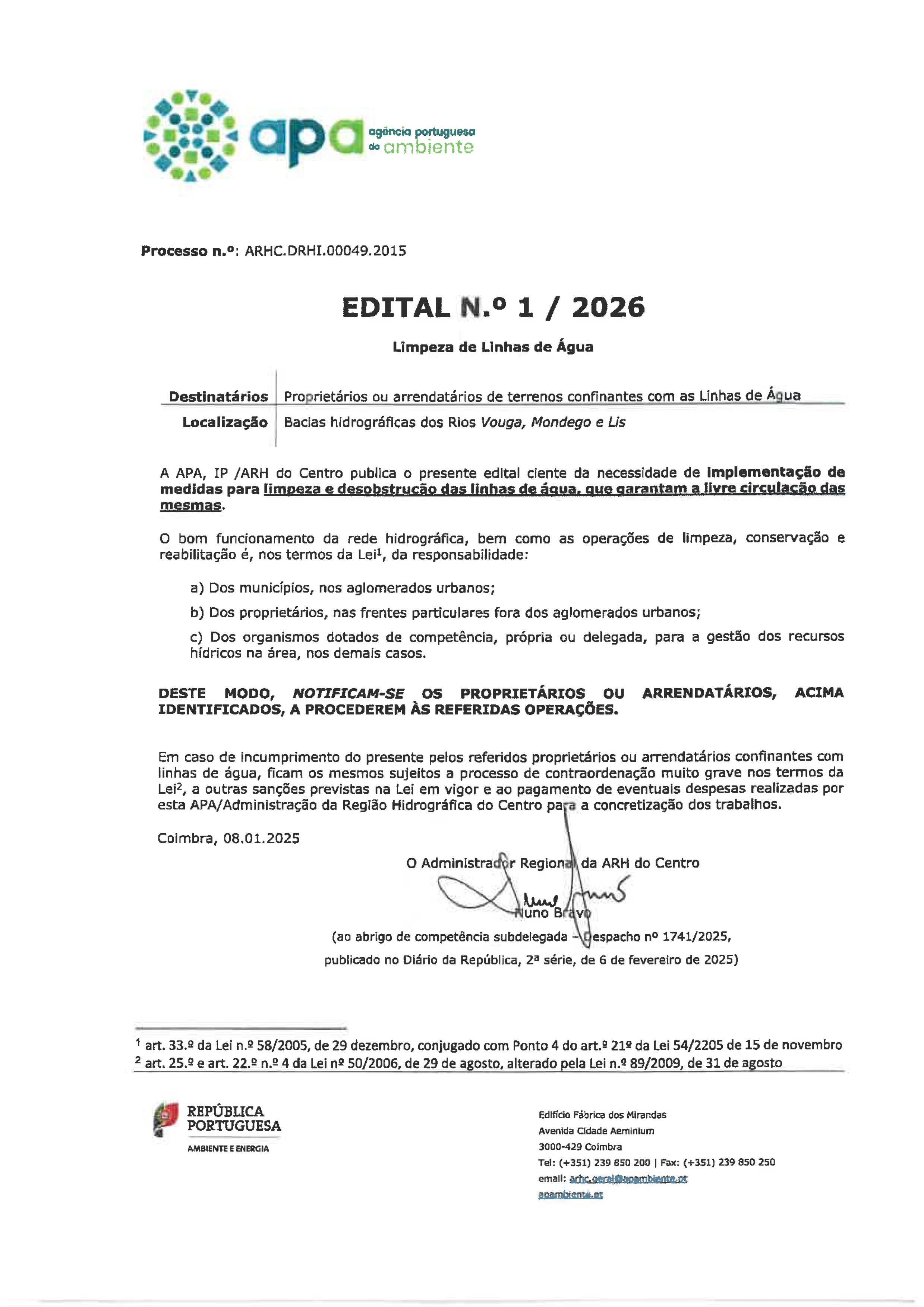 Edital n.º 1/2026 - Limpeza de Linhas de Água