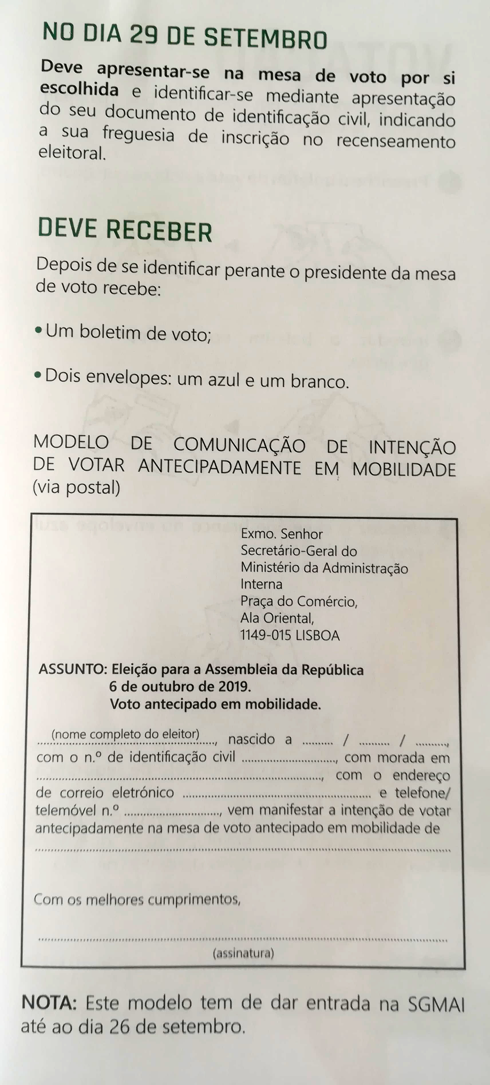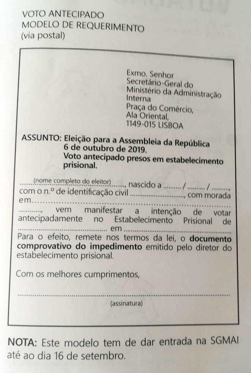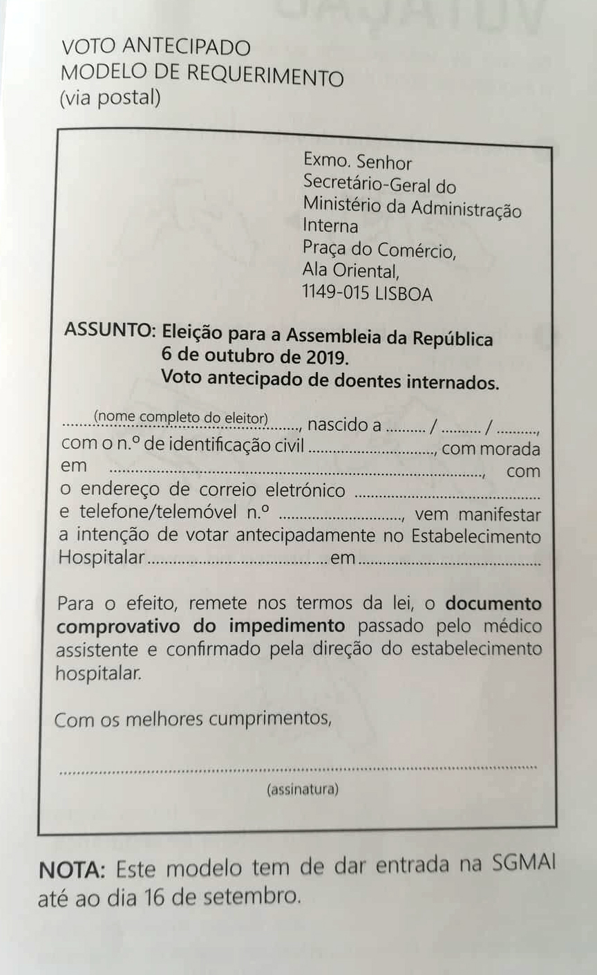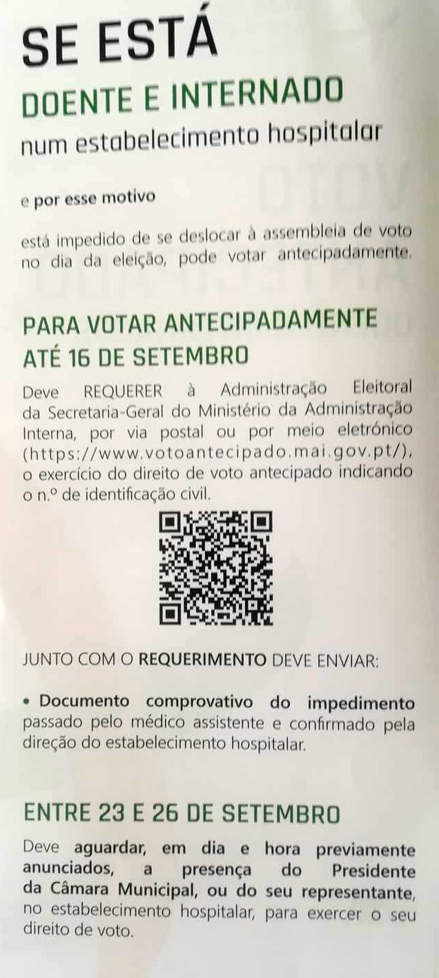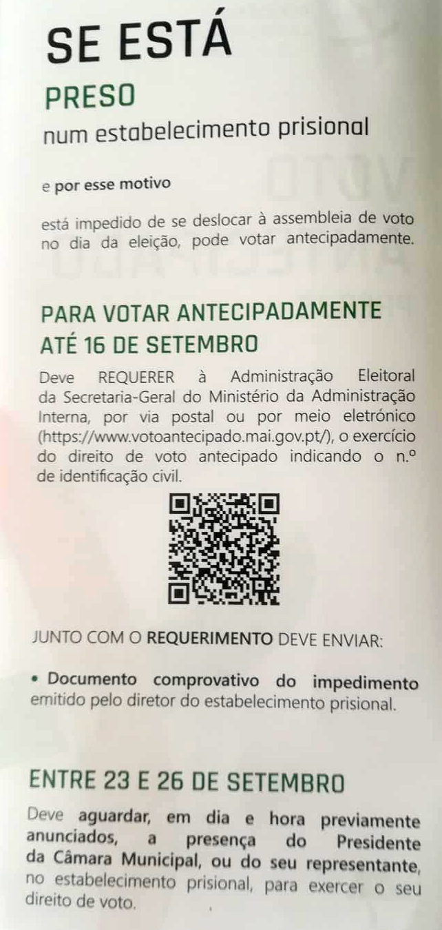 Dia 6 outubro voto antecipado: em mobilidade, presos, doentes internados e eleitores deslocados.