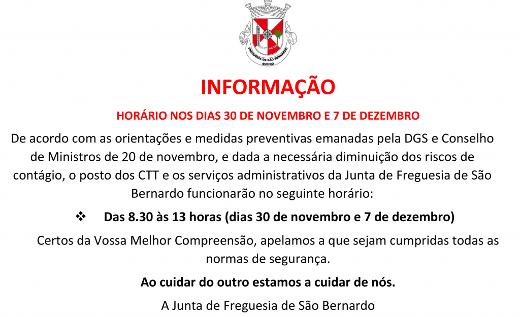 Medidas Covid-19 - Horário dos Serviços da Junta e CTT