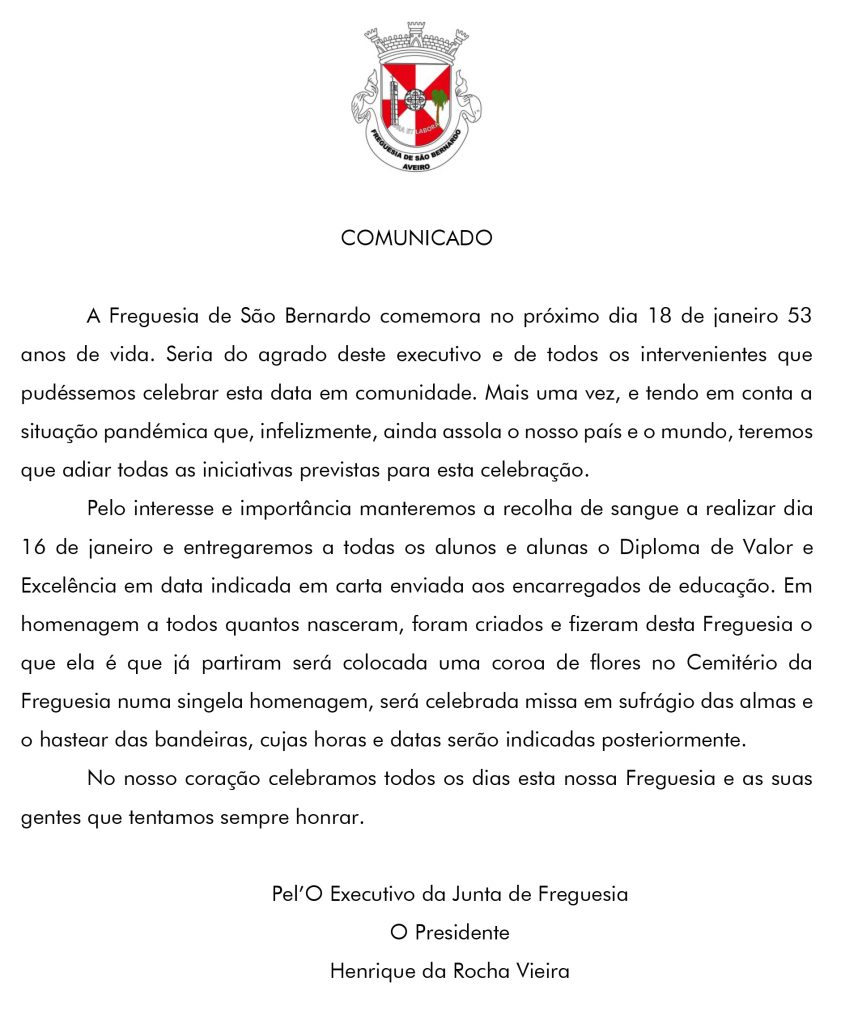 Comunicado - Recolha de Sangue
