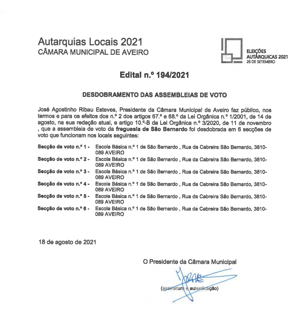 Eleições Autárquicas 2021 - Local de voto