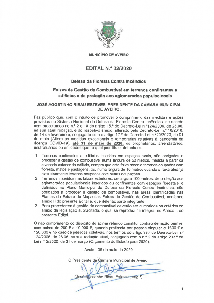 Edital n.º 32/2020 - Faixas de Gestão de Combustíveis