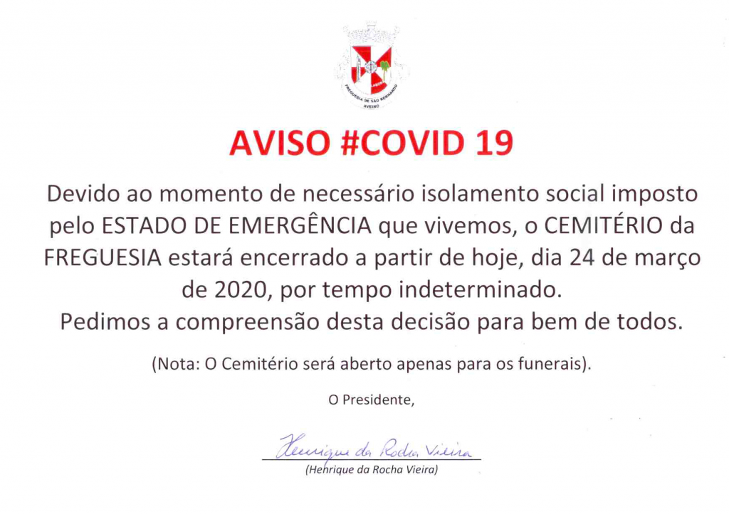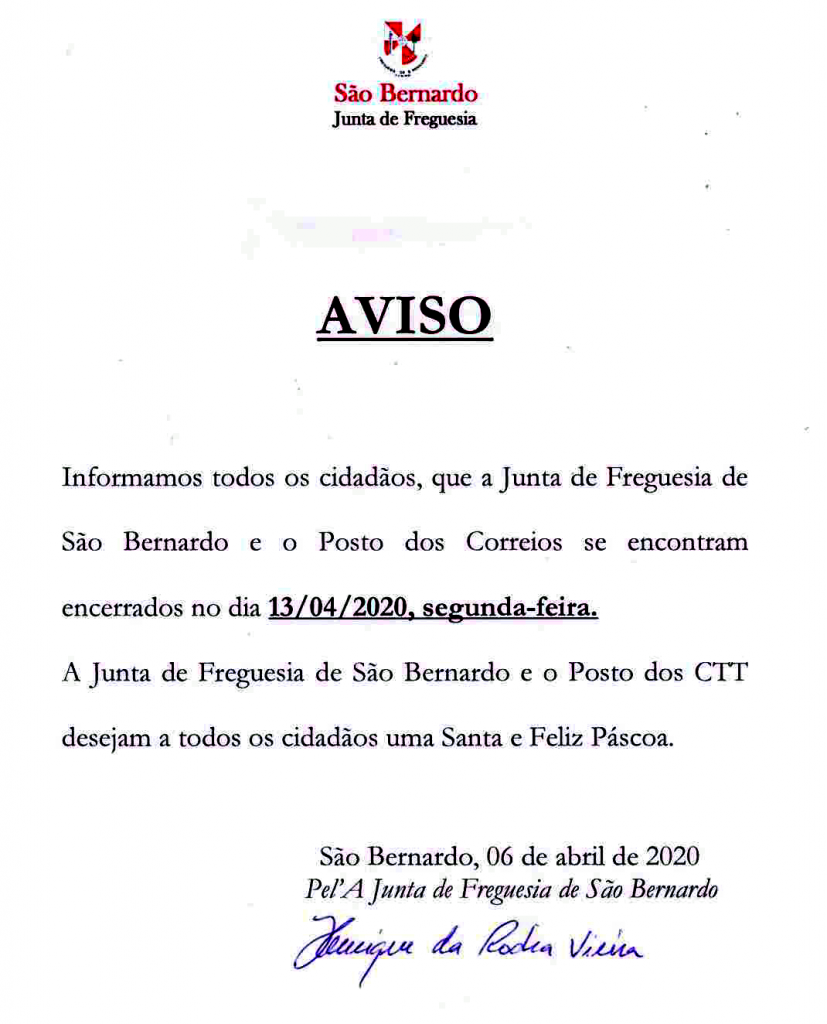 Aviso - Encerramento da Junta de Freguesia de CTT no dia 13...