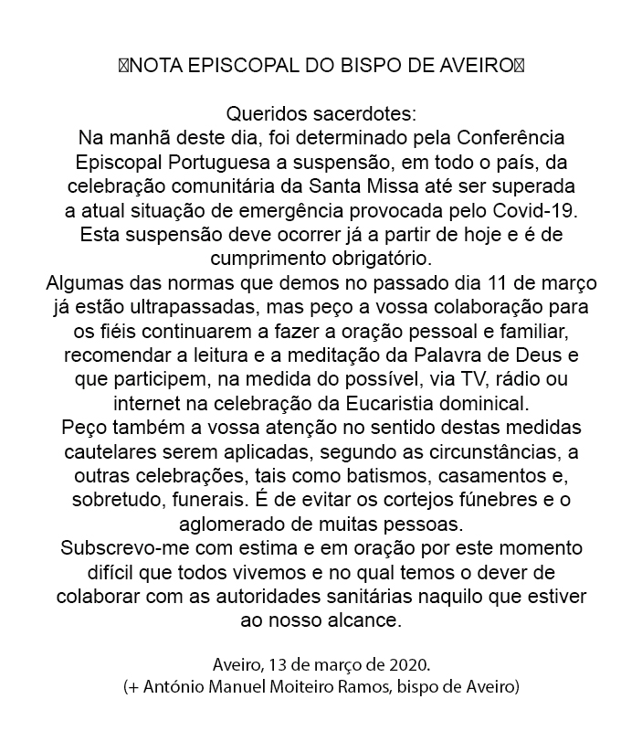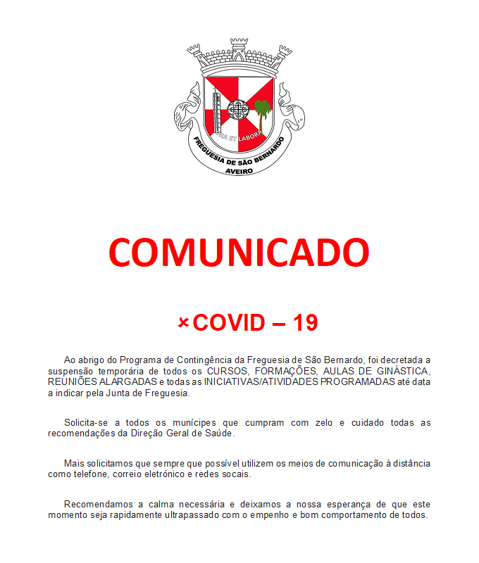 Comunicado - Suspensão temporária de todas as ativdades e iniciativas - COVID-19