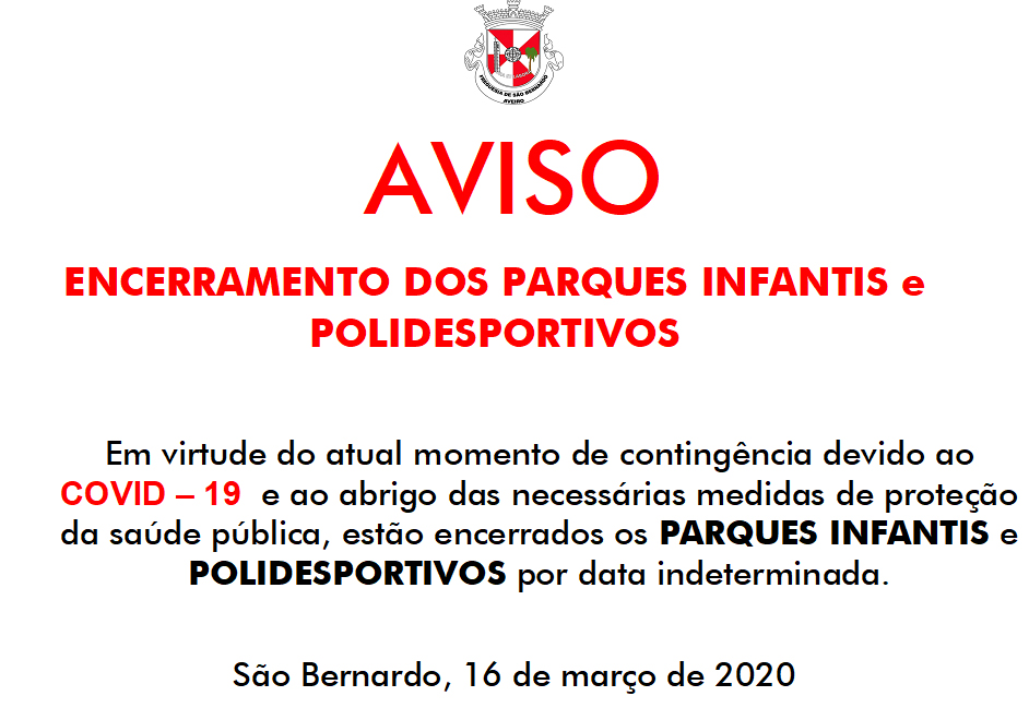 Aviso - Encerramento dos parques infantis e polidesportivos