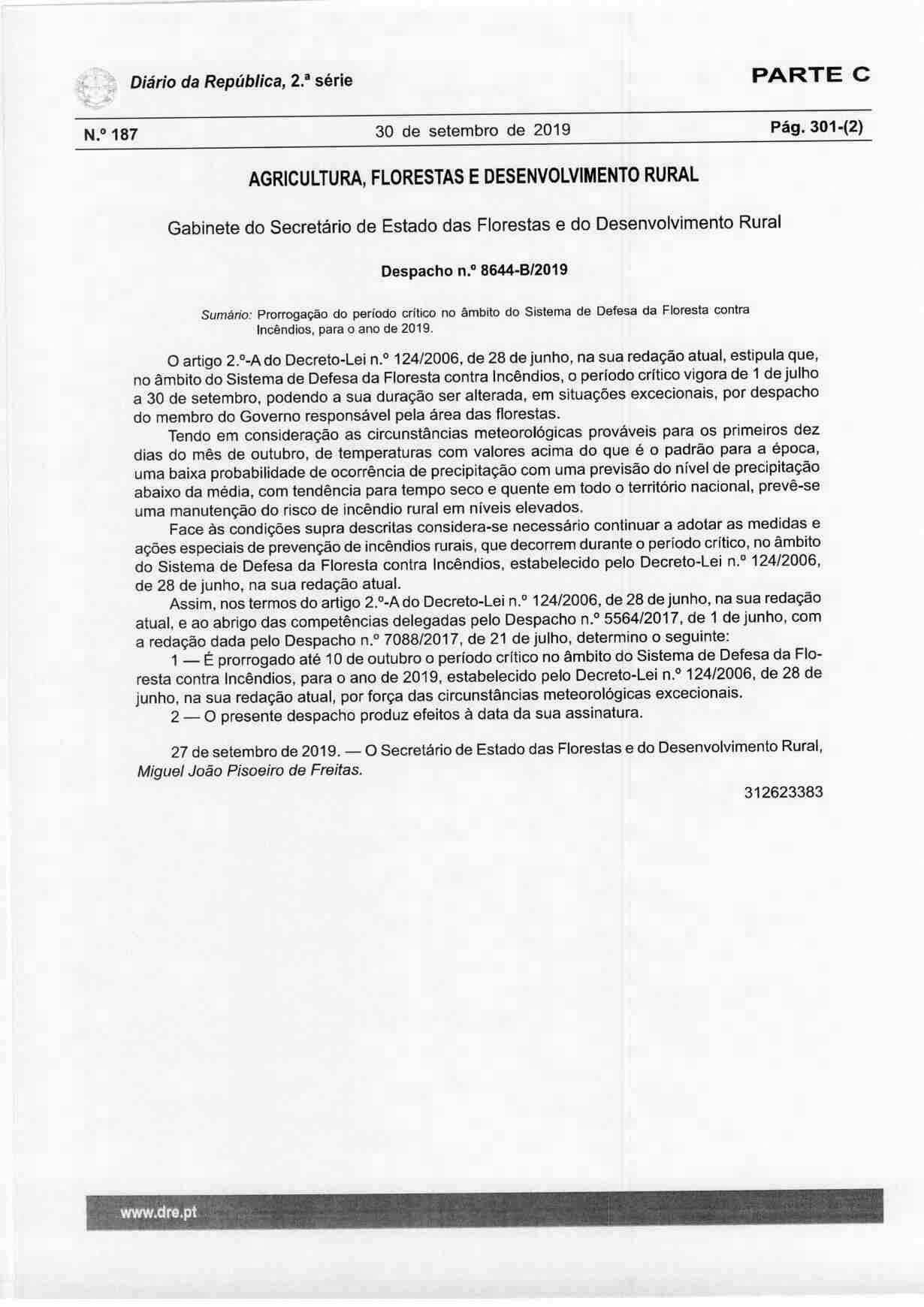 Prorrogação do período crítico - até 10 de outubro